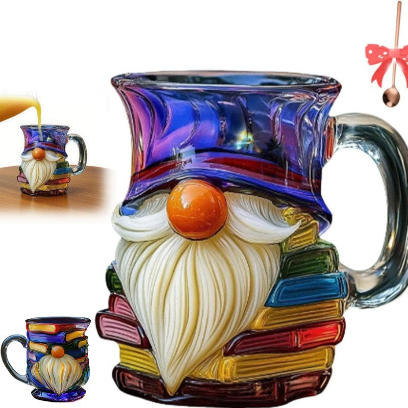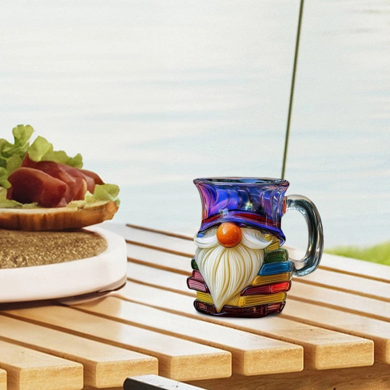 Glass 3D Painted Gnome Book Mug Stack Coffee Cup Novelty Room Home Decor