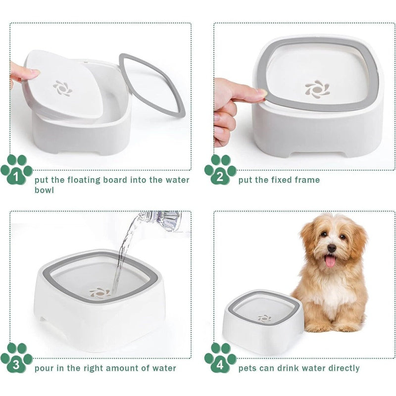 【EASY TO ASSEMBLE AND CLEAN】No spill dog water bowl for messy drinkers size: 19.5*19.5*7.8cm/7.68*7.68*3.07inch. Capacity 1.5L consists of a floating plate, splash-proof rim, and a basin body, easy to install and disassemble, and can be easily removed for cleaning. The removable washable design can effectively reduce bacterial growth, suitable for dogs, cats, and long-haired pets of all sizes.