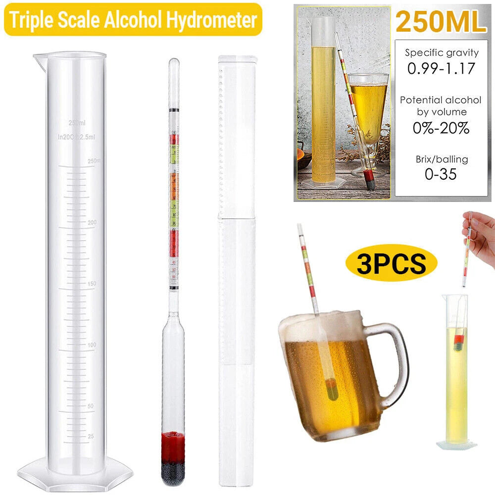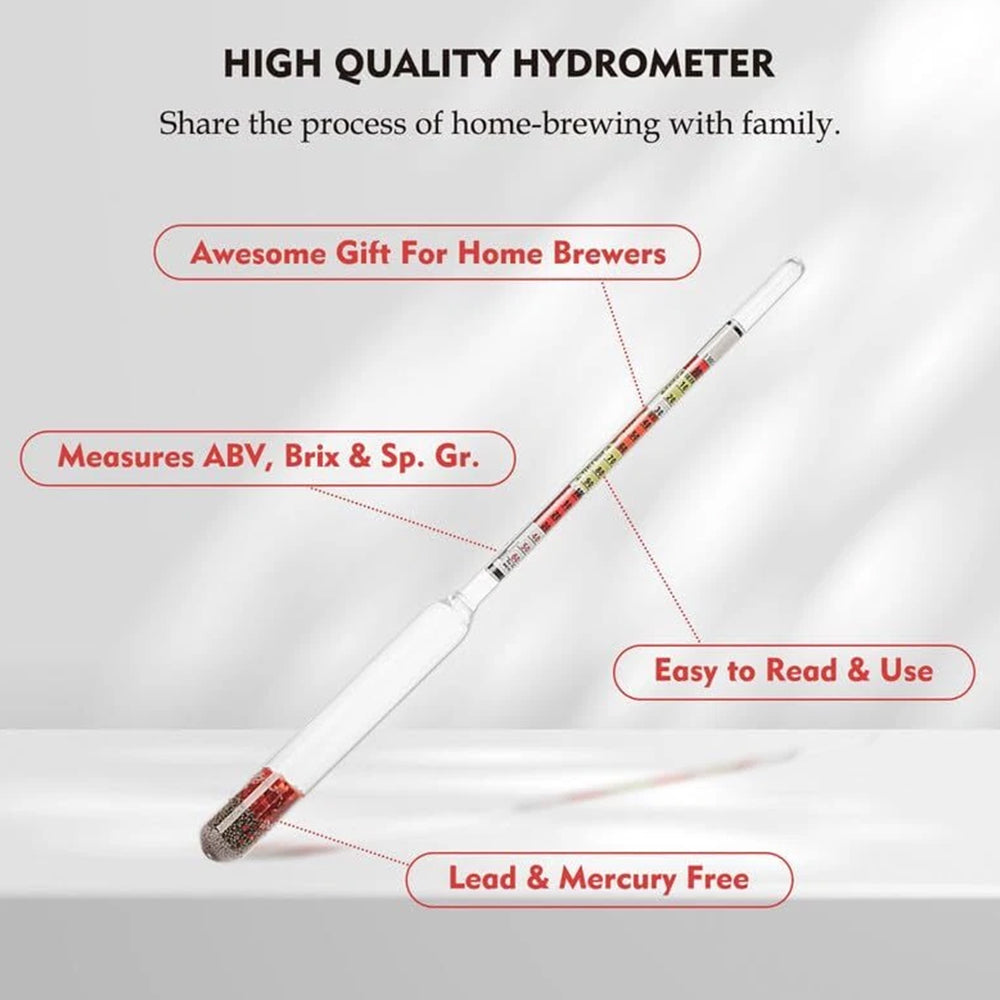All in One: This set contains 1 Triple Scale Hydrometers, 250ml test jar, hard-cover hydrometer protective case.