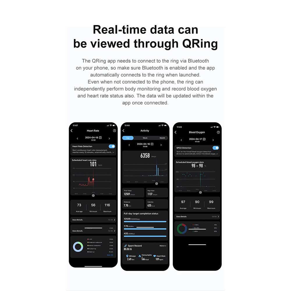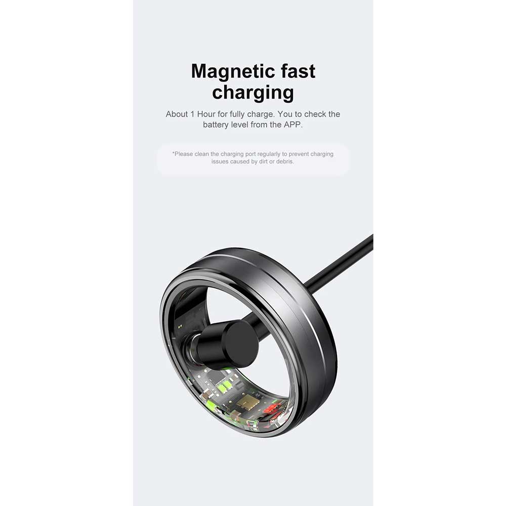 3. How to start: Charge the COLMI Ring with the included charging cable. The heart rate light will light up to indicate successful startup. Then you can use the APP Qring to connect the COLMI Ring.