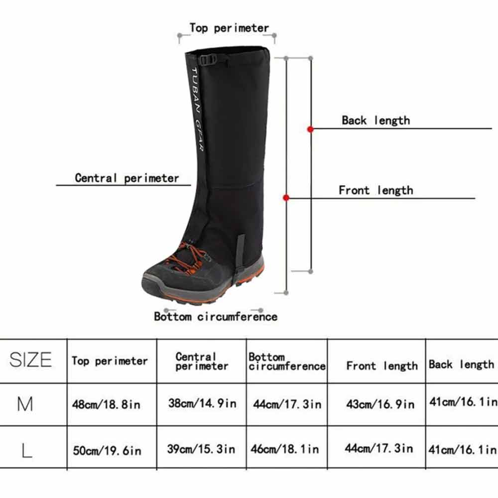 SIZE: M/L/XL size for choose. Tighten drawstring straps and buckles for comfort. Adjustable band and Drawcord on the top; easy putting on and taking off. Work perfecter than low ankle gaiters