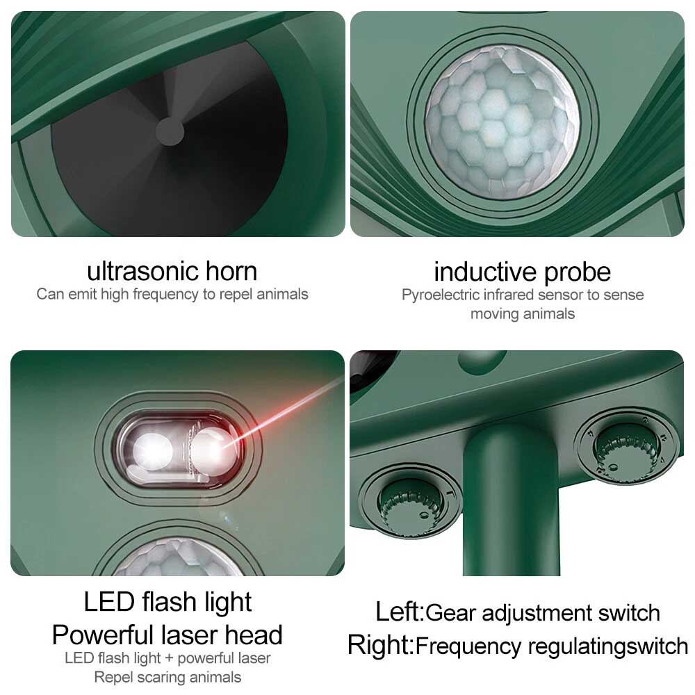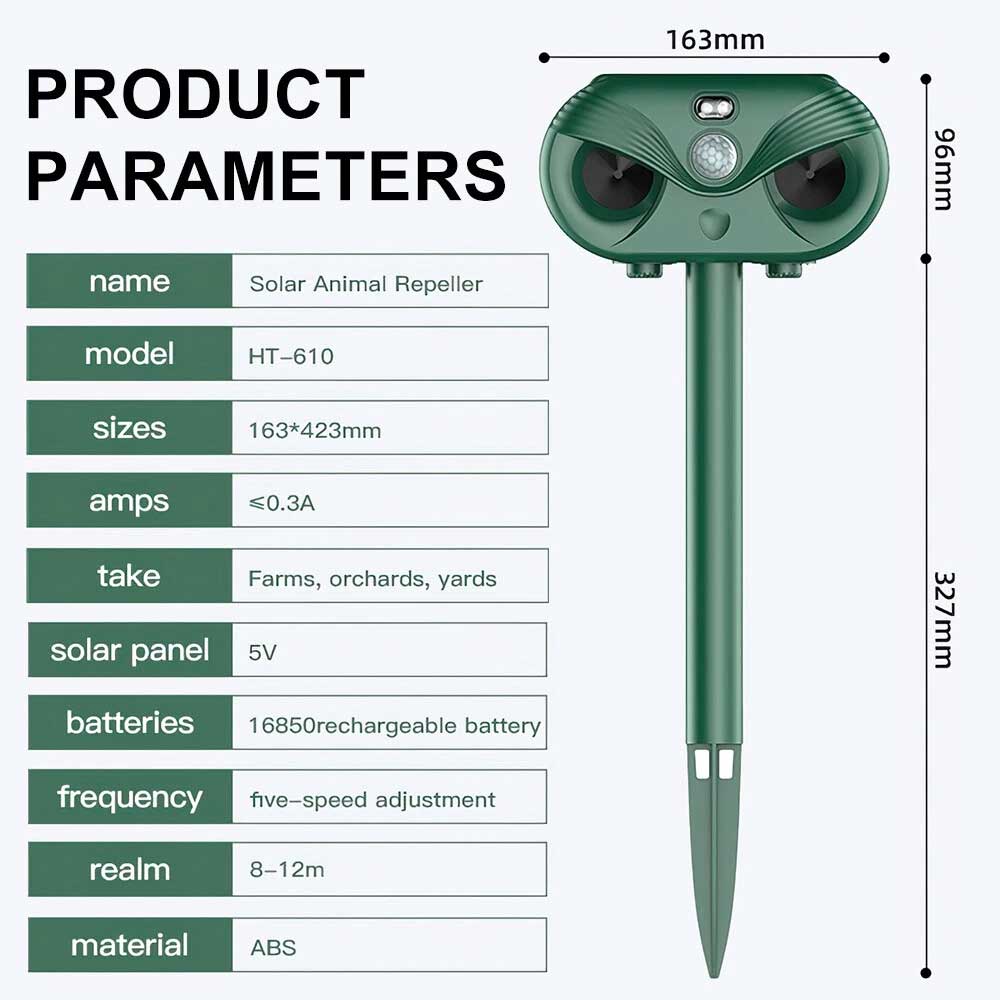 • Solar-Powered :This repellent is powered by solar energy, making it eco-friendly and cost-effective as it doesn't require any electricity or batteries.